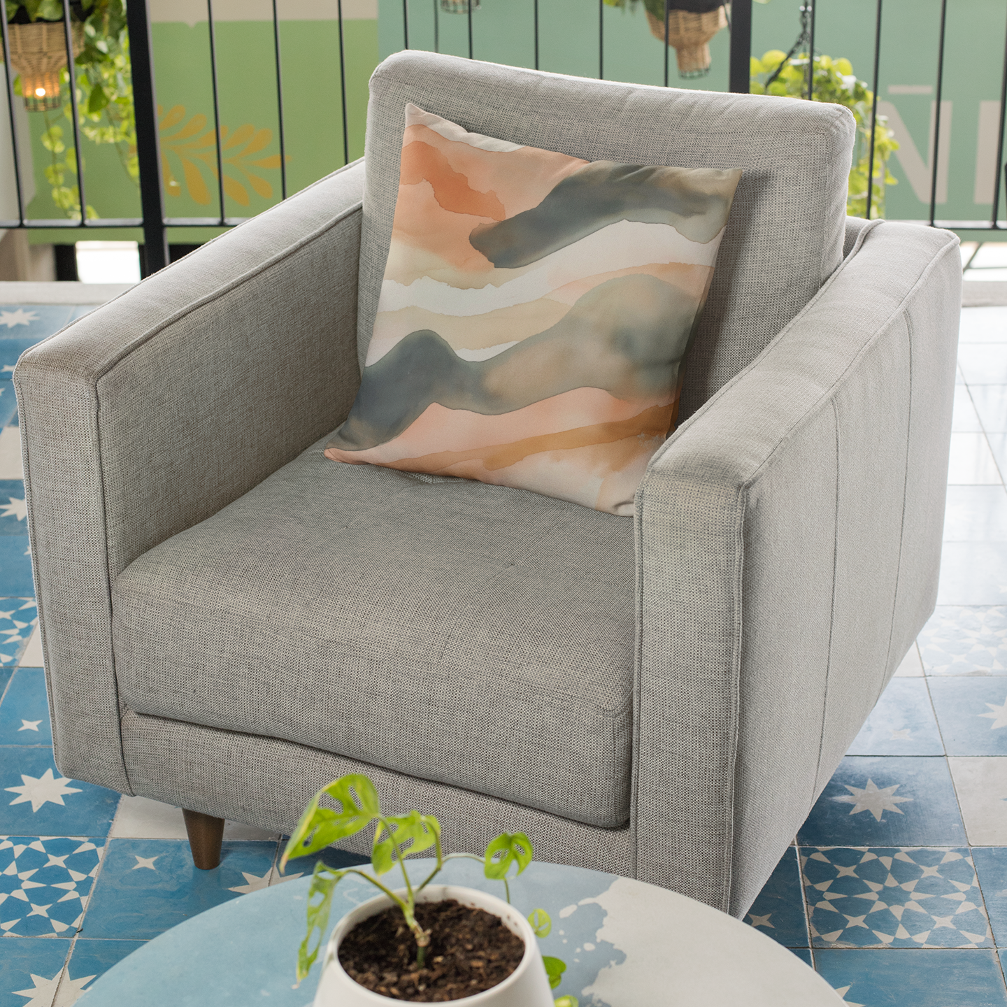 This throw pillow features an abstract wave pattern crafted in earthy tones and soft textures, making it a perfect accent for a sofa, chair, or bed.