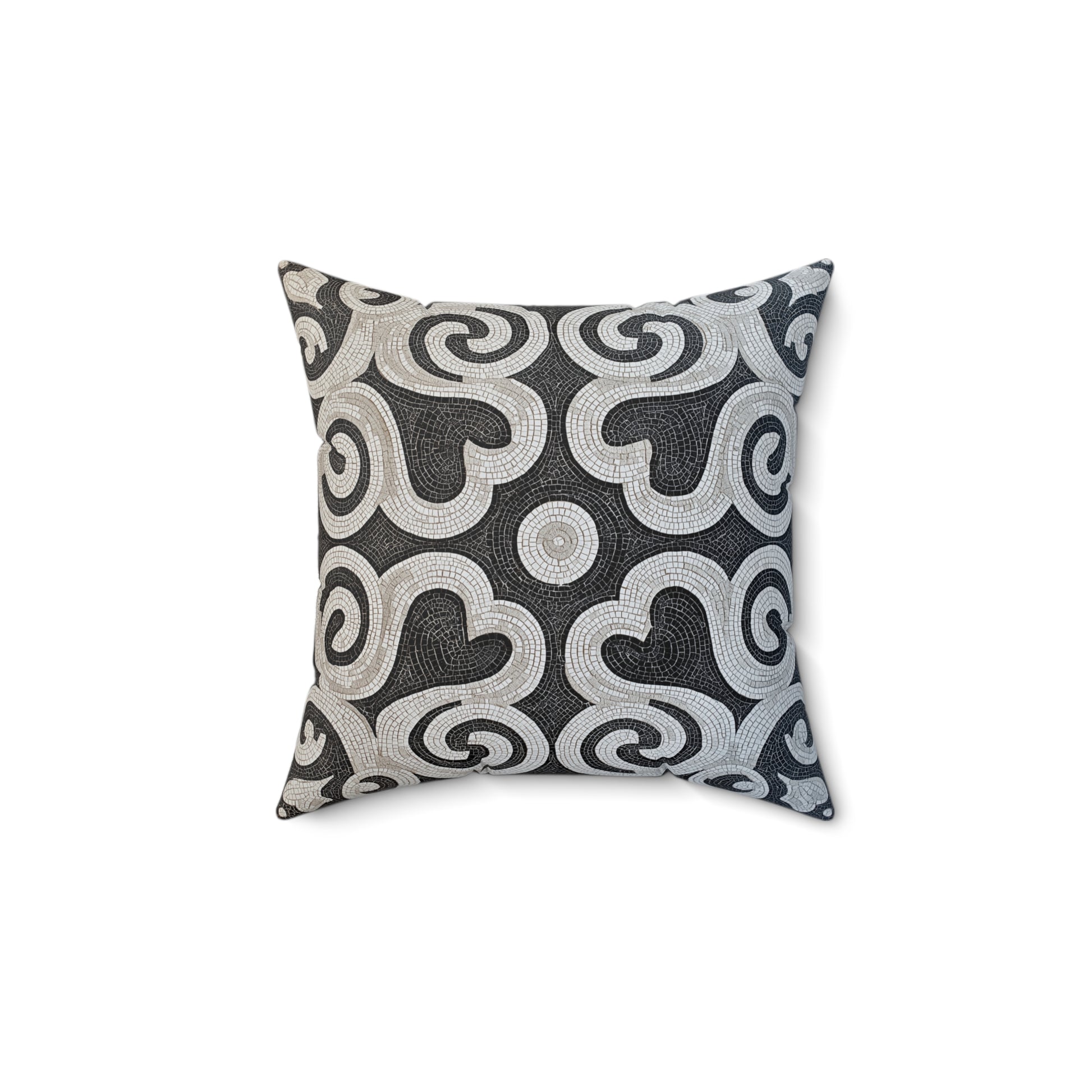 Elegant Heart Pattern Throw Pillow – Black & White Accent Cushion