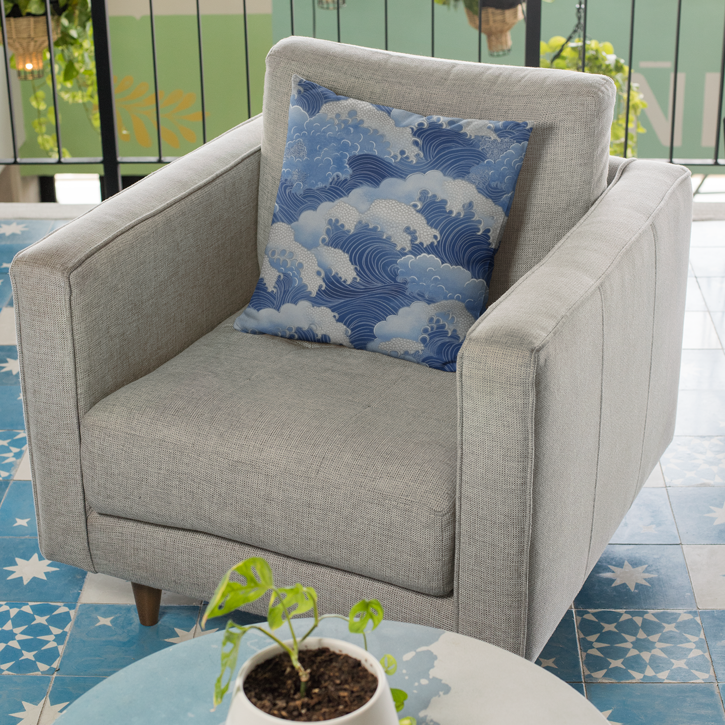 Ocean Wave Throw Pillow – Coastal Nautical Accent Cushion